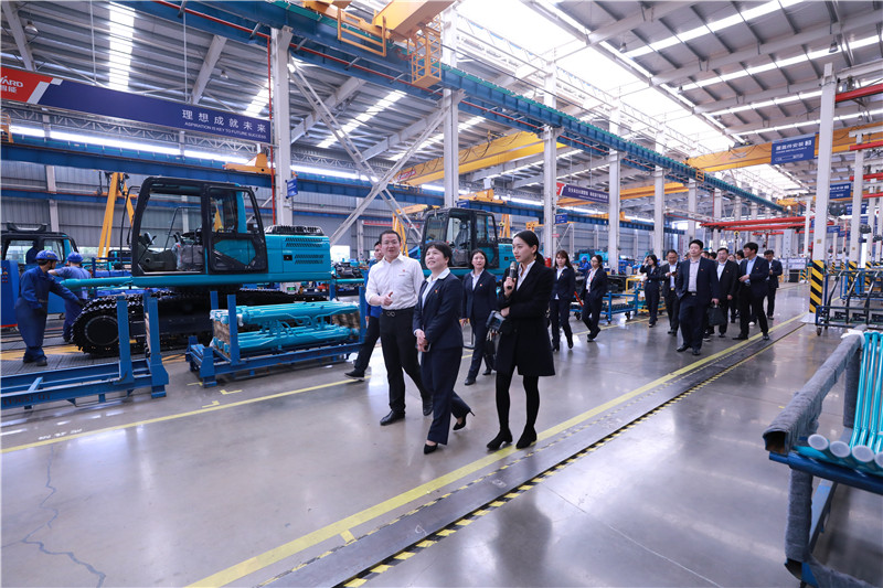 宣讲会前,杨颖一行沿着习近平总书记考察山河智能的路线,参观了山河智能挖掘机装配车间和企业文化展厅,了解工程机械产业发展情况。