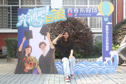 “奔跑吧!后浪”“青春不散场”“保持热爱 奔赴山海”……校园里,指示牌、横幅等毕业季打卡造景,别出心裁。许多毕业生比着各种手势,在打卡地进行拍照留念。