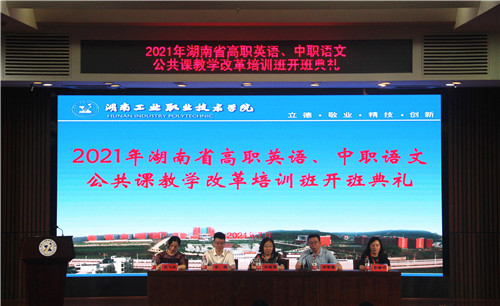 本网讯 7月5日上午,湖南省2021年职业院校教师素质提高计划公共课“高职英语”“中职语文”教学改革培训班开班仪式在我校图书馆学术报告厅举行。我校副校长邱丽芳,基础课教学部相关负责人以及培训团队全体老师、培训班全体学员参加开班仪式。仪式由基础课教学部部长邓新春主持。