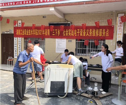 电子设备义务维修小分队秉承为村名服务的宗旨,利用自己专业所长在尖岩村、青艾村开展定点维修和上门服务,共维修损坏家电80余件。他们不畏酷暑,提着沉重的工具箱,迎着太阳的暴晒,用最敬业的态度,认真地为来访村民修理已经损坏的家用电器。村民表示,对青年志愿者的到来感到非常欣慰和亲切,“我儿子从城里带回来的榨汁机坏了,我自己在家捣鼓半天都没用,你们一会儿就修好了,真是厉害啊!”听到这样的赞誉,正在维修的小组成员们露出了腼腆的笑容。