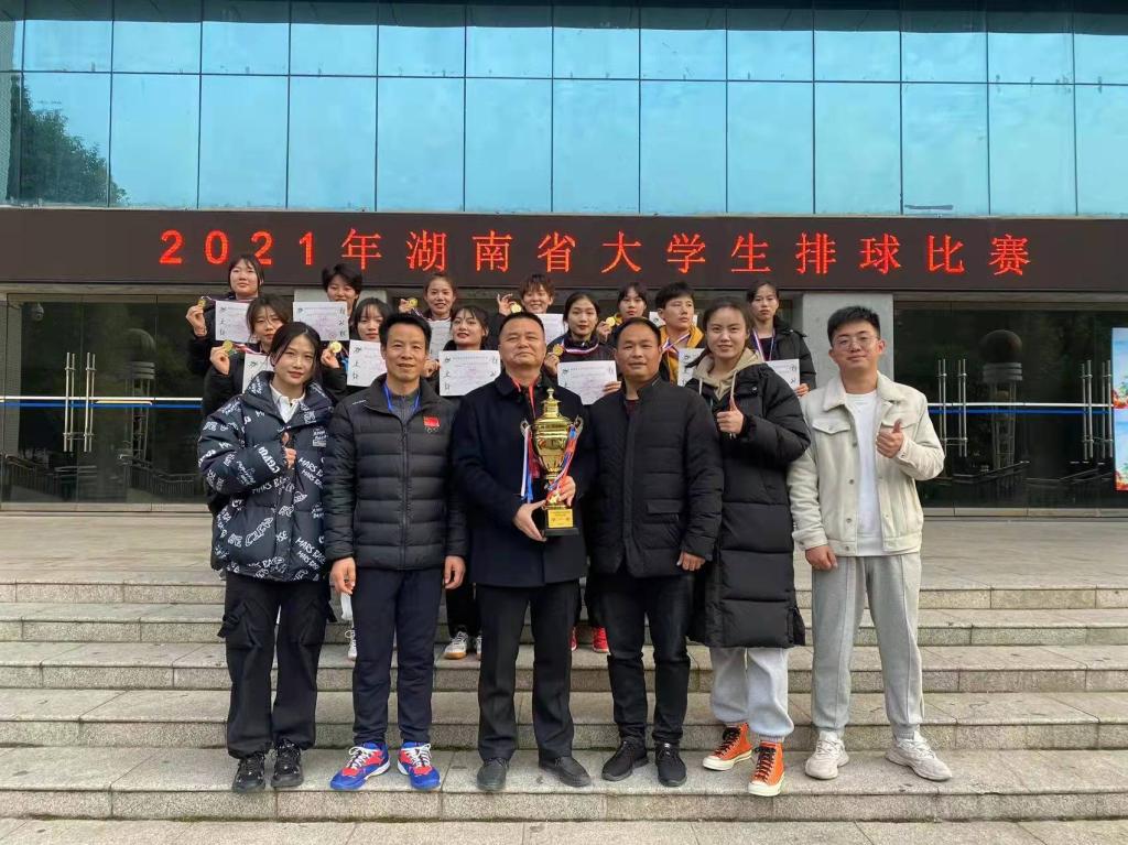 本网讯 12月1日至9日,湖南省大学生排球比赛在湖南师范大学体育学院举行,我校女子排球队在体育艺术部部长周文等相关负责人的带领下参加了本次比赛。
