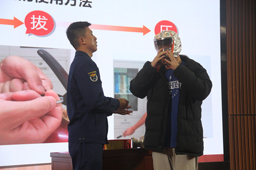 岳麓区五星消防中队的欧阳峻威通过真实的案例,详细讲解各种火灾意外情况下要采取的救护措施。他重点从躲避火灾烟雾、燃气消防、电器消防等三个方面讲解了防火减灾的原理和方法,并对常用消防器材、用具的使用进行介绍和演示。他指出,火灾通常情况下不是天灾,而是一些错误行为引发的灾害,因此,增强安全意识,懂得消防安全知识对于防火减灾十分关键。