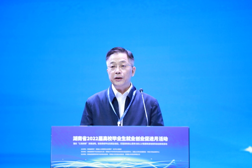 本网讯 12月22日,湖南省2022届高校毕业生就业创业促进月活动启动仪式在长沙市岳麓科创港举行。副省长何报翔出席启动仪式,省委教育工委副书记、省教育厅党组副书记、副厅长夏智伦,省人力资源和社会保障厅党组成员、副厅长廖跃贵,长沙市副市长刘明理出席活动并讲话。在长高校分管就业创业工作的校领导及相关部门负责同志,省教育厅、省人社厅相关处室负责同志,岳麓山大学科技城管委会负责同志参加活动。学校党委书记刘建湘代表学校在启动仪式活动上做典型经验交流发言。