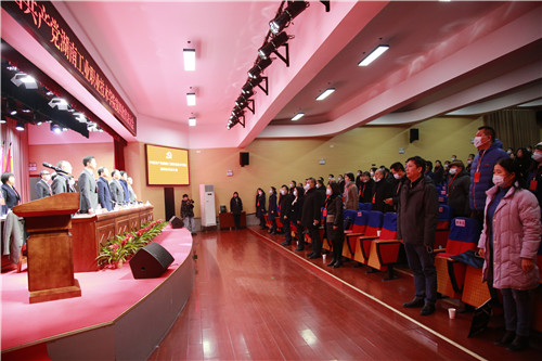 本网讯 12月29日,学校尚善楼1102气氛庄严、热烈,主席台上鲜艳的红旗分列两侧,簇拥着镰刀和锤头组成的中国共产党党徽。上午9时,中国共产党电子pg游戏平台下载第四次代表大会在雄壮的国歌声中开幕。大会应到会代表147名,实到会代表146名,符合规定人数。省委教育工委副书记、省教育厅党组成员王建华出席会议,会议由向罗生同志主持。