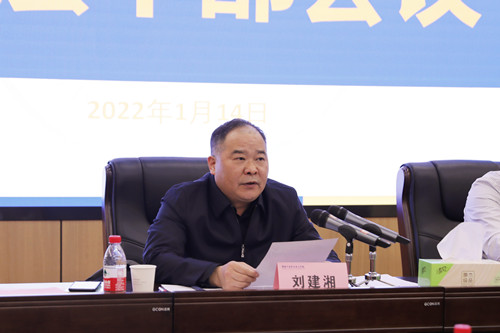 刘建湘对过去一年取得的成绩表示肯定和祝贺,他指出,过去的2021年,经过全校上下的不懈努力,学校各方面工作有了长足进步,获得了可喜的成绩,学校的整体办学实力和影响力有了进一步的提升,发展进入了全新的快车道。同时,他指出目前还存在的一些问题和不足,他希望,全体领导干部要提高站位,担当使命,在理论学习上下功夫,在贯彻落实上下功夫,努力把美好的蓝图变成生动的实践;奋勇争先,奋力作为,擦亮“工程机械”“楚怡职教传统”两张名片,不断扩大学校品牌影响力;创新实干,埋头苦干,干出精气神和加速度,始终做到知责于心、担责于身、履责于行,干出工院领导干部的鲜明标识。