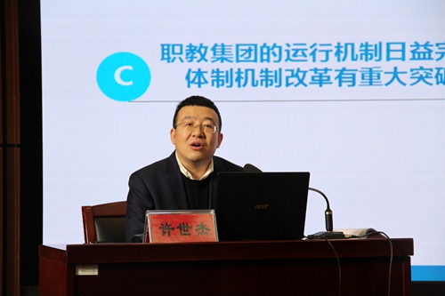 关于当前职业教育集团化办学面临的一些问题,许世杰主要谈了六点看法:一是历经20多年发展变革的职业教育集团化办学,来自于实践,产生于基层,是当前和未来一段时期开展职业教育各项工作的关键抓手;二是其符合世界高等教育和职业教育发展的普遍规律,是基于产教融合校企合作的重要载体和有效途径,是完善职业教育和培训体系的重要实现形式;三是在现有体制下要大胆探索,要用勇气、担当、胸怀、魄力,不等不靠积极想办法;四是要正确理解集而不团、抱团取暖,看清当前工作中的不足,逐步改进;五是领导老师们是真正的推动者和实践者,将大有可为;六是职业教育集团化办学已成为我国职业教育发展的亮点,并逐步成为中国特色职业教育走向世界的名片。