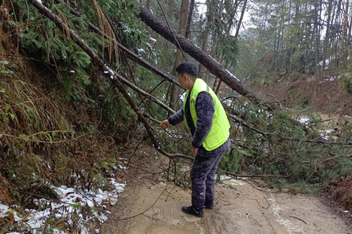 为保障村民能顺利复工复产,工作队和村两委开展“上路行动”,清扫路面积雪,铲除薄冰和清理树枝,消除路面结冰湿滑、障碍物倒塌等安全隐患,协助指挥车辆通行,保证人车安全通行。