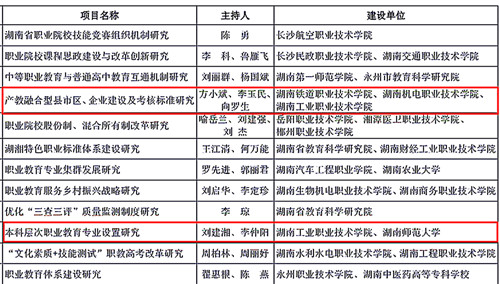 据悉,此次湖南省职业教育创新发展重大(重点)攻关项目全省共申报96个项目,最终遴选出12个优质项目,我校是全省唯一同时立项两个项目的建设单位。