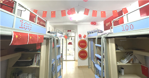 走进2栋345学生寝室,映入眼帘的是干净的地面、整齐的摆饰和红色元素的装饰。寝室长蒋新洋自豪地介绍:“这是我们发挥专业所学,营造的红色文化学习生活环境。”据了解,该寝室被评为2021年度学校“文明寝室”,该班还有多个寝室在寝室活动月活动中荣获一等奖和二等奖,多名学生参加校园首届艺术设计大赛并取得优异成绩。