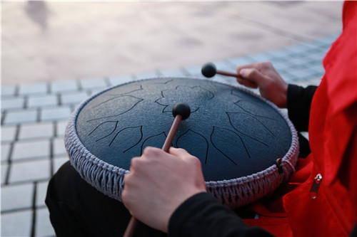 首先,鼓圈引导师为大家介绍了鼓圈音乐的基本理论,并现场演示了各种音乐道具的声音特征和敲击技巧。