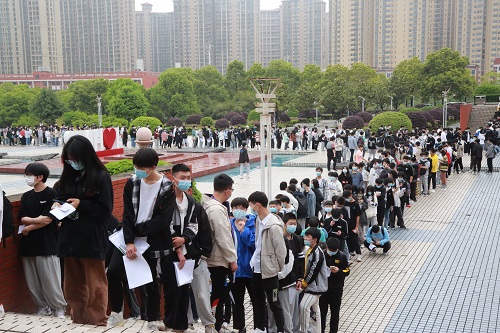 “请同学拿好身份证准考证,配戴好口罩,有序进入考场……”考场外,考生依照工作人员指引,排队有序的进入考场。志愿者们也分布在学校的各个地方,热情的为前来参加考试的学生服务,提供便利。
