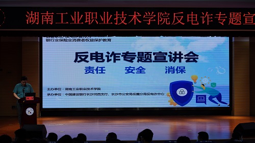 本网讯 5月24日晚,我校在大学生活动中心开展反电诈专题宣讲活动。我校相关部门负责人,建设银行长沙河西支行、岳麓公安分局反电诈中心、岳麓区含浦派出所相关负责人,我校各二级学院辅导员、班主任及学生代表参加此次宣讲会。会议由学校保卫处处长段可主持。