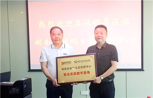 我校党委书记刘建湘(左)代表学校向企业授“联合实践教学基地”牌