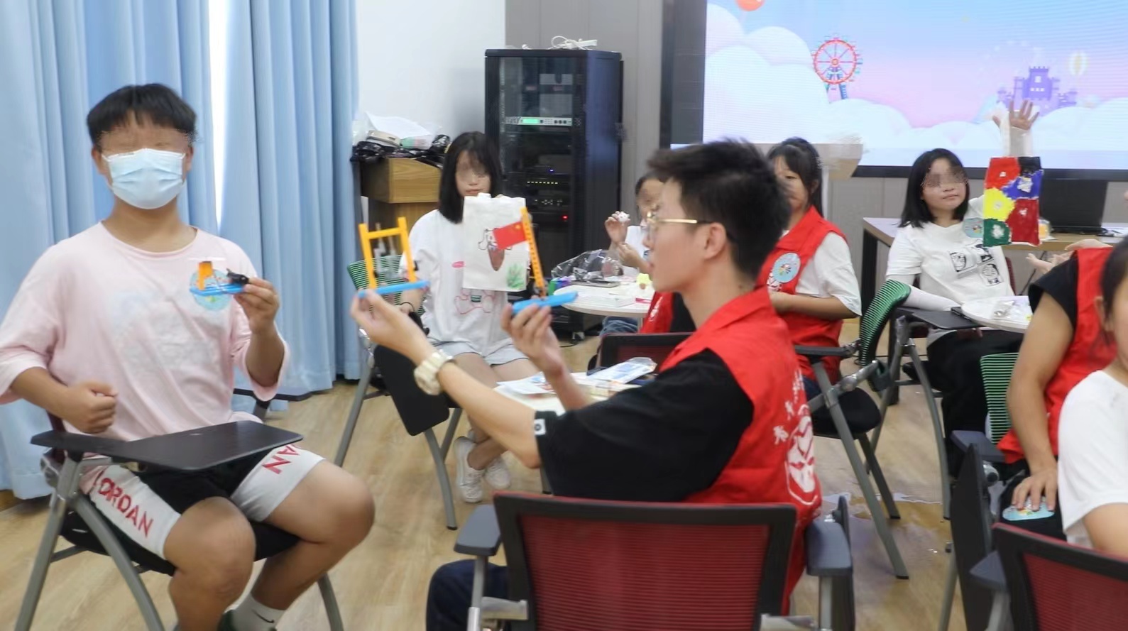 阳光成长课堂上,志愿者结合团中央统一下发的“七彩假期”教具包,带领关爱对象通过手绘、手工DIY、科技小制作,体验科学小原理,感受艺术、传统文化。孩子们发挥自己的创意,完成了一件件出彩的手工作品,好奇心和探索热情得到了激发。
