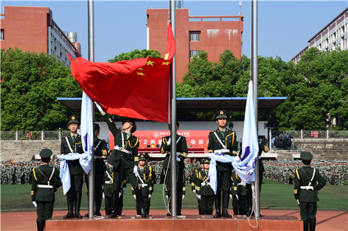 随后校领导向军训团授予军训团旗,2022级新生为期14天的军训生活正式拉开帷幕。