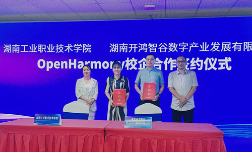 会议现场,我校与开鸿智谷公司达成OpenHarmony校企合作签约。未来,双方将锚定OpenHarmony产业学院、OpenHarmony技术实习实训基地、人工智能、工业软件、工业大数据等各个新型产业链,共建校企一体化课程体系、高水平实习实训基地。