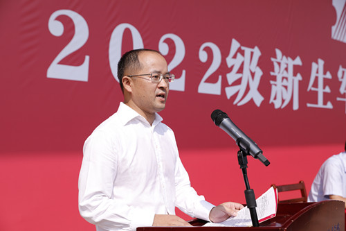 学校副校长成涛主持2022级新生军训总结汇报暨开学典礼