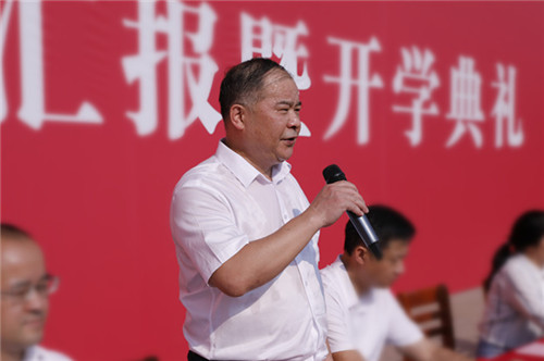 “追求卓越,争创一流。我们卓越文化的精髓就写在‘工’字里。”开学典礼上,向罗生通过讲述历届优秀校友的奋斗故事,解析直立、侧放、斜放的“工”字,勉励新同学要不畏艰难,争做志存高远的技能达人;争做追求卓越的技能达人;心存善念,修养品德,争做以德为先的技能达人。他寄语新同学,希望大家以“狭路相逢勇者胜”的胆识,“越是艰险越向前”的斗志,“不破楼兰终不还”的毅力,从工院起航,在青春的赛道上奋力奔跑,成为新一代“芙蓉工匠”,为中华民族的伟大复兴贡献力量!