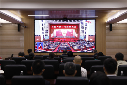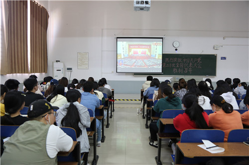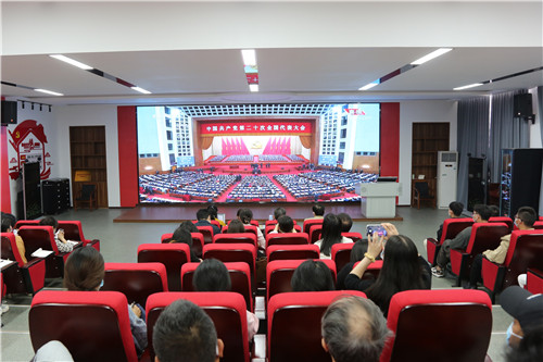 本网讯 10月16日上午,举世瞩目的中国共产党第二十次全国代表大会在北京人民大会堂隆重开幕,习近平总书记代表十九届中央委员会向大会作报告。我校617名干部、教师和1838名学生党员、团员代表在行政楼、教学楼、报告厅等42个会场,集中收看党的二十大开幕会盛况,认真聆听、学习、热议习近平总书记的报告。