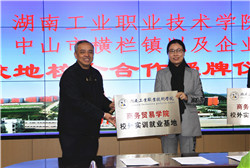 中山市横栏镇党委委员、副镇长陈华添,中山市横栏镇经济发展和科技信息局主任陈伟军,中山市照明灯饰制造业协会会长陈爱华、常务副会长区健强、副会长朱金林以及中山新创铭电子科技有限公司等8家企业总经理出席签约仪式。我校副校长邓建国、党政办主任侯新华、招就处处长孟正文、商务贸易学院院长邓新春、商务贸易学院党总支书记杨学文、商务贸易学院副院长宁朝阳以及李泽平等部分专业教师出席仪式。