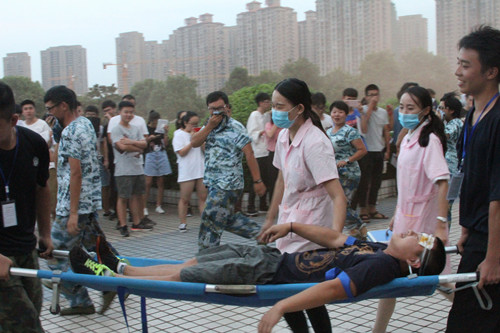 安全教育大会结束后,4800余名新生在教学楼进行了应急疏散演练。火灾警报声响起后,在专业人员引导下,全体新生井然有序的在规定时间内逃离火灾现场,圆满完成了此次演练。
