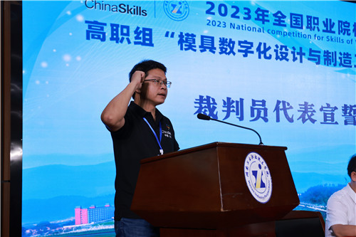 裁判员代表张超彦老师、参赛选手代表谢栋现场宣誓。