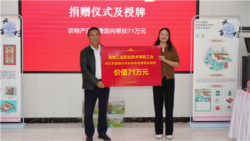 发布会上,学校发布了《大字古寨等你来》歌曲、头车村VI形象设计、绘画作品、相关文创作品、农特产品消费定点帮扶及现金捐赠等乡村振兴项目,为红岩溪镇设计乡村振兴消费帮扶礼品盒“红岩公社”;向红岩溪镇头车村采购价值71万元的消费帮扶物资,并捐赠乡村振兴帮扶资金30万元。