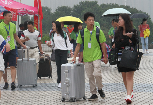 来自湖南宁乡的我校工业设计与艺术学院室内设计专业2017级新生刘伟辉是2017迎新工作迎来的第一位报到新生。前段时间腿脚受伤仍在恢复期的他受到了迎新人员的关注。他表示:“很感谢学长学姐们的关心,从报名到入住寝室,他们都陪伴在旁帮我提行李、带我完成报到流程。原本担心自己完成报到会很费力,现在我觉得很暖心,学校就像一个大家庭,而我们新生是家庭新成员。”说到这里,他腼腆的笑了。