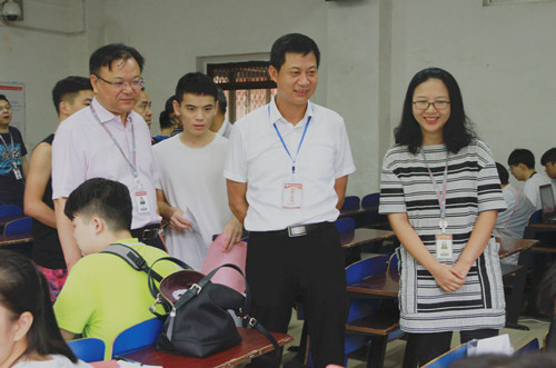校长向罗生(左二)、党委副书记陈超(左一)、副校长邓建国(右三)等看望迎新工作人员并了解新生报到情况