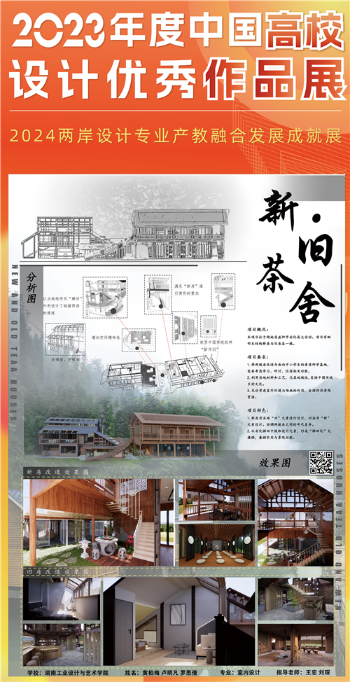 本次参展作品在第九届“中装杯”大学生环境设计大赛数字设计赛项中分获全国一等奖、二等奖。2项参展作品均基于真实的乡村木结构房屋改造项目,对传统乡村木构建筑提出了新旧结合的设计畅想。