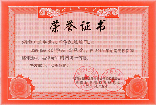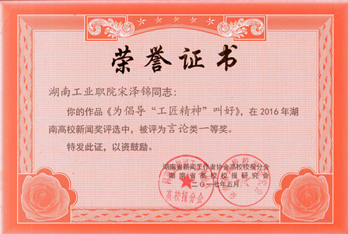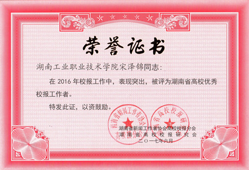 与此同时,我校校报被中国高校校报协会湖南分会、湖南省新闻工作协会高校校报分会和湖南省高校校报研究会授予“优秀校报”称号。校报编辑部责任编辑宋泽锦老师被评为“优秀校报工作者”。