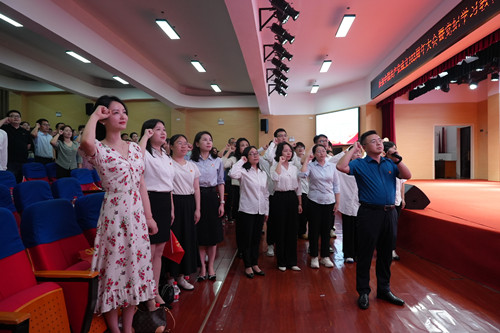 本网讯 6月28日,学校庆祝中国共产党成立103周年大会在学校尚善楼1102举行,全体教职工党员、离退休党员代表、学生党员代表参加会议,会议由学校党委副书记、校长吴亮红主持。