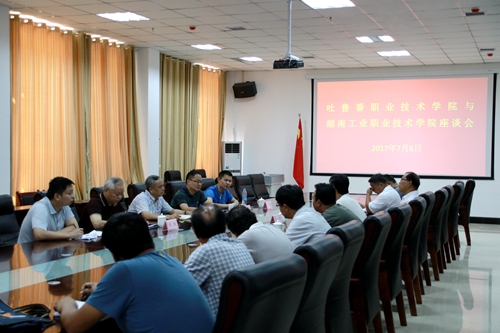 吐鲁番职业技术学院为我省对口帮扶学校。近年来,我校同吐鲁番职业技术学院在教师培训、捐赠专项资金、选派挂职教师等方面多次合作,为吐鲁番职业技术学院的专业建设、师资队伍建设、实训基地建设等作出了积极贡献。座谈会上,双方就民族学生培养、大学生就业指导、招生服务管理等工作进行了深入交流。