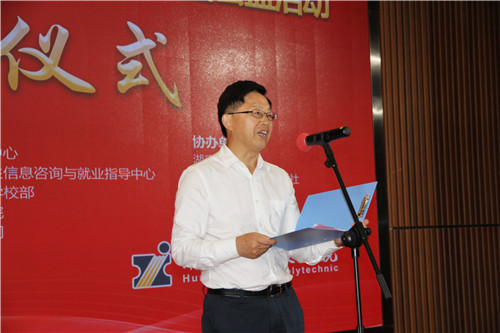 刘建湘在闭幕式致辞中表示,我校高度重视毕业生就业创业工作,认真落实就业创业工作“一把手”工程,形成了领导重视、机制健全、经费充足、管理科学、绩效明显的工作局面,就业形势也呈现出专业对口率高、本地就业率高、就业稳定率高的“三高”特色。我校每年毕业生初次就业率、用人单位满意率均在92%以上,众多毕业生已成为企业的技术骨干和管理精英,涌现了一批机械装备制造领域的技术能手,产生了良好的社会影响。他代表我校全体师生感谢省人社厅、省教育厅和团省委对我校就业创业工作的支持与信任,预祝活动取得圆满成功,祝同学们就业顺利,前程似锦。