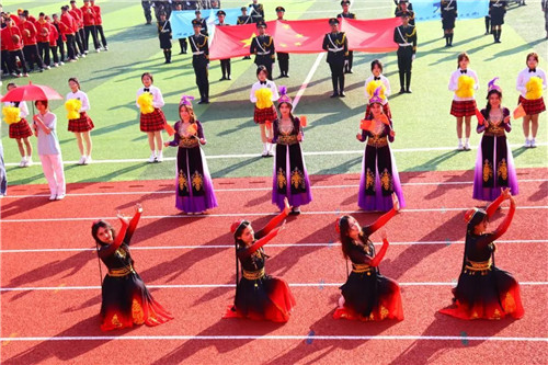 沐浴着秋日的阳光,伴随着激昂的《运动员进行曲》,国旗护卫队、会徽方阵队、彩旗队、鲜花队、裁判员、高水平运动员、各二级学院代表方阵、各分工会教职工方阵等依次入场。现场彩旗飘扬,乐声激昂,鲜花队的舞蹈摇曳生姿,高水平运动员方阵带来一场武术表演与球类运动交融的视觉盛宴,机械工程学院方阵通过羽毛球、游泳等动作表演演绎“更快、更高、更强、更团结”奥林匹克格言,信息工程学院方阵热门IP形象一登场瞬间引爆全场,商务贸易学院方阵汉族学生与维族学生共舞,表达了对民族团结的炽热情感·……这些独一无二的表演让人眼前一亮,展示了工院学子积极向上,乐于创新的青春风采。