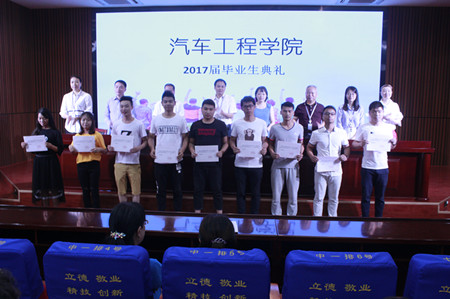 本网讯 “多年师生情,今昔恨别离。满堂祝福语,只赠学子行”。又是一年毕业季,6月11日上午,汽车工程学院2017届毕业生毕业典礼在学校图书馆多功能报告厅隆重举行。学校宣传统战部部长肖望兵,汽车工程学院院长何忆斌、汽车学院各教研室主任、全体辅导员、专任教师代表以及2017届全体毕业生参加典礼。毕业典礼由汽车工程学院党总支书记周理主持。