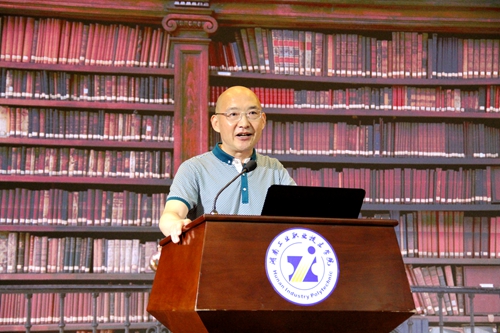 “看文学大师妙笔著经典,听工科教授跨界策围城”是本期活动的宣传定位,而彭教授却将其改编为“国学大师锱铢积累写名著真乃大咖,工科教授不务正业策围城实属忽悠”,还奉上“No zuo No die”为横批。以此自嘲方式幽默开场,引全场听众开怀,勾起听众聆听兴趣。