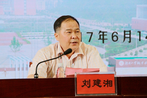 王建华充分肯定了刘建湘同志在学院工作近10年的成绩。王建华说,刘建湘同志历经多个岗位锻炼,治校办学经验丰富,大局意识和组织领导能力强,事业心责任感强,思路清晰,作风民主,敢于创新。刘建湘同志自担任院长以来,理顺学院管理体制,破解发展难题,深化内部治理体系改革,推进教育教学改革,工作实绩非常突出。