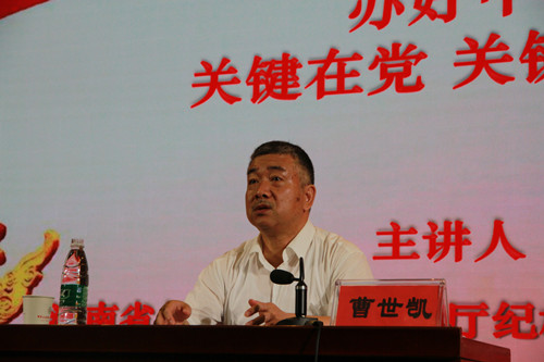 曹世凯说,历史充分证明,办好中国的事情,关键在党;从当前的有利条件和历史机遇分析,中国最大的优势是有中国共产党的坚强领导;从面临的各种挑战因素来看,国家正处在关键的历史节点,最大的挑战也在我党的本身,特别是在我党身上存在的“四风”,即形式主义、官僚主义、享乐主义和奢靡之风。加强党的内部建设,必须坚持问题导向,着力解决党内存在的问题与矛盾;必须“严”字当头,管党治党全面从严,使党的执政能力不断增强,政治生态风清气正。