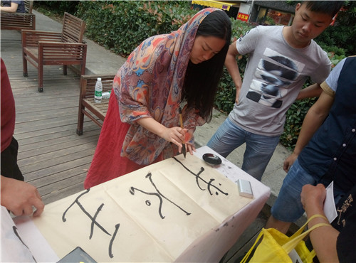 5月25日,楚艺书法协会开展的“书法走进社区”活动在云栖谷社区进行。活动中,书法协会的同学现场书写作品,展示中国书法艺术的魅力,同时对小朋友们进行了现场书法指导,和女书爱好者相互交流,吸引了许多社区居民、中小学生、外国友人、书法爱好者前来交流参观,并为社区居民免费赠送了作品50余幅。活动不仅对中国传统文化及书法艺术进行了宣传,也展现了当代大学生的良好精神面貌。