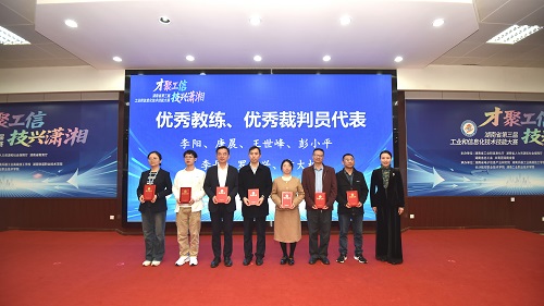 本网讯 在刚刚落幕的湖南省第三届工业和信息化技术技能大赛中,我校在工业大数据赛项实现全面丰收:师生参赛队伍全部获奖,其中教师李俊成、刘阳获得职工组一等奖,学生梁琪、谭坚淳获得学生组一等奖;学校荣获“冠军选手单位”“突出贡献单位奖”双项荣誉;王世峰、伍添秀两位老师获评“优秀教练”,杨丽莎老师获评“优秀工作者”。