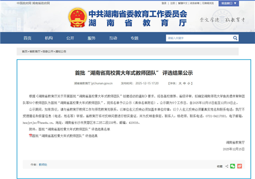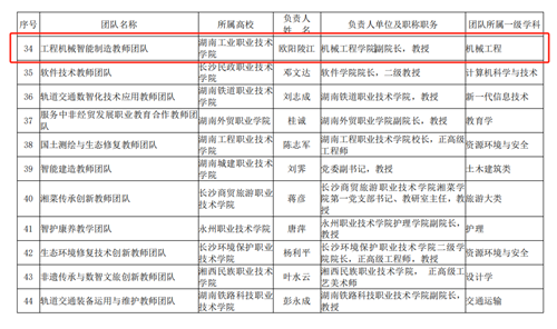 本网讯 近日,湖南省教育厅公示首批“湖南省高校黄大年式教师团队”名单,我校“工程机械智能制造教师团队”成功入选。全省高校共有50个团队入选。