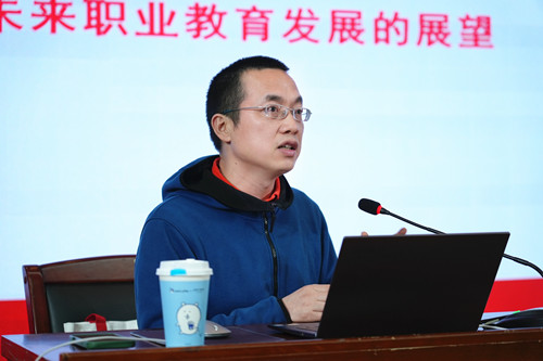 报告中,唐智彬围绕世界职业教育发展的前沿趋势、当前我国职业教育发展的几个热点话题、对未来职业教育发展的展望三大维度展开深入讲解。他结合调研数据与实践案例,系统解读联合国教科文组织2022-2029年职业技术教育与培训战略、全球职业教育数字化转型、人工智能赋能教育体系变革等前沿议题,直面职业本科教育发展前景、产教融合实效性等焦点问题,为在座教师剖析痛点、厘清思路。唐智彬强调,职业教育需在拥抱技术变革的同时回归教育本质,着力培养有灵魂、有灵性的技术技能人才。他对智能化社会对职业教育的冲击、绿色发展给职业教育带来的契机等内容的深刻分析,为学校办学实践和研究谋划我校“十五五”发展规划提供重要启示。