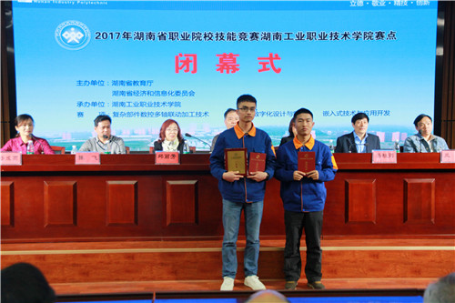 刘建湘宣布2017年湖南省职业院校技能竞赛电子pg游戏平台下载赛点“复杂部件数控多轴联动加工技术”、“工业产品数字化设计与制造”、“嵌入式技术与应用开发”赛项竞赛圆满闭幕。