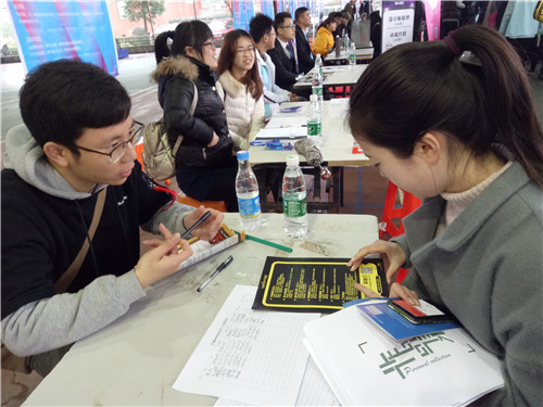 寒潮来袭,三月天气依旧寒冷,但这并不能阻挡毕业生们前来应聘的热情,招聘会开始前,不少毕业生就拿着简历在场外等候。除了应届毕业生,也有不少在读学生前来咨询,提前了解就业情况。在采访中了解到,来自产品设计S2014-1班的管嘉懿为这次招聘会做了充分的准备,还特意准备了个人作品集,他认为找到一份自己感兴趣的工作相对更重要,现在主要想积累自己的工作经验,在薪金方面没有特别高的要求;室内设计S2015-6班的杨超群表示,他想在暑假开始实习,因此过来寻找适合自己的岗位,他建议学弟学妹们根据企业要求定好学习目标,注重专业知识的积累以及综合素质的提升,提前了解本专业的就业前景,在以后的实习和工作中有规划、有目的、有动力。