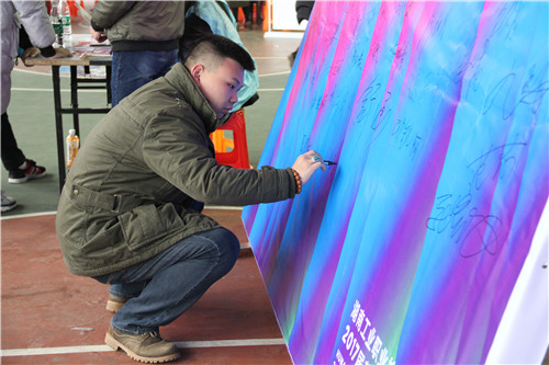 达成就业意向的同学们在“专场招聘会成功签约榜”上签名