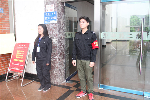 在各个考场进出口都有保卫人员执勤疏导、检查证件、维持秩序。来自计算机网络技术S16―2班的向琴便是坚守在考场门口的安保人员之一。她表示很高兴为准学弟学妹们提供帮助,能作为工院大家庭的一员来迎接新成员,幸福感不言而喻。