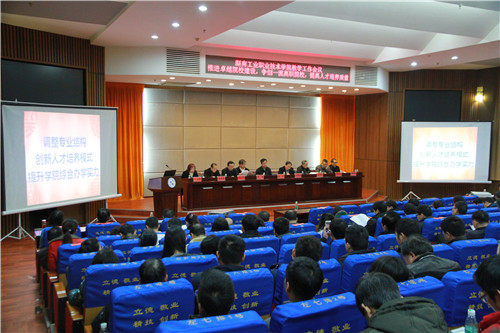 本网讯 1月10日,我院教学工作会议在图书馆报告厅隆重召开。学院全体院领导、中层干部、各系部教职工代表参加会议。会议由学院副院长董建国主持。