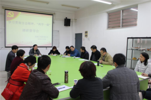本网讯 12月2日上午,院党委书记熊琦、副院长邱丽芳带队,党政办主任侯新华、监审处处长邱玮玲、现代设计艺术系党总支副书记郑志凌、监审处干事陈佳一行6人来到机械工程系开展“学习贯彻全会精神 深入推进两学一做学习教育”情况调研督导。机械工程系党政领导班子成员、各支部书记、教研室主任、党员代表、群众代表和民主党派人士参加调研督导会。会议由机械工程系副主任李强主持。