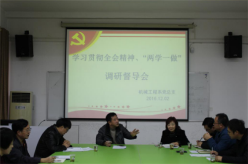 系党总支书记马跃龙就机械工程系党总支学习贯彻十八届六中全会精神、开展“两学一做”学习教育和落实基层党建重点任务等系列工作情况进行了专题汇报。